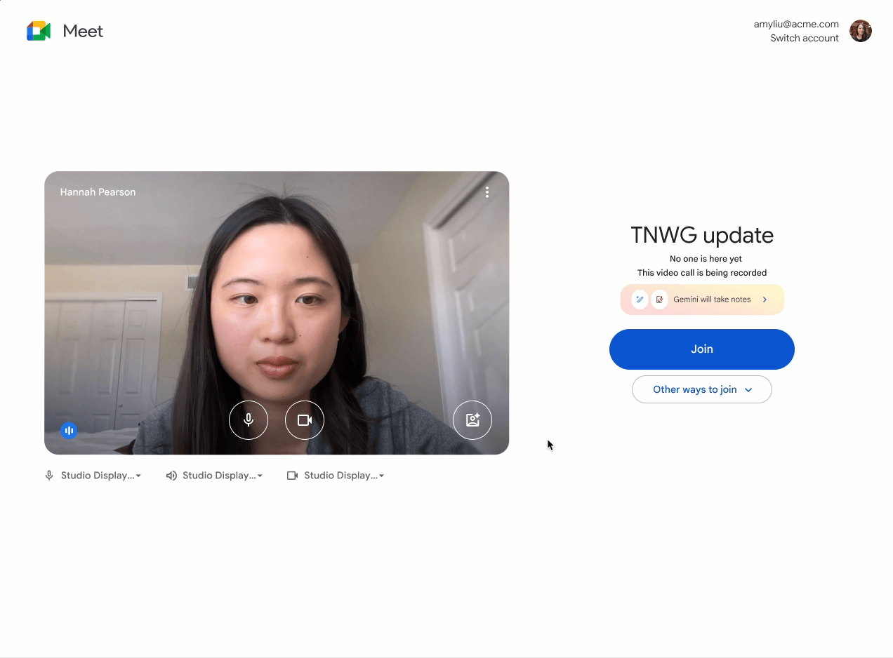 Khi người tham gia tham gia cuộc gọi trong Google Meet, họ sẽ được chuyển đến phòng chờ (green room) trước. Trong phòng chờ, người tham gia giờ đây sẽ thấy thông báo nổi bật hơn khi chức năng “Ghi chú hộ tôi” được bật cho cuộc họp mà họ sắp tham gia.