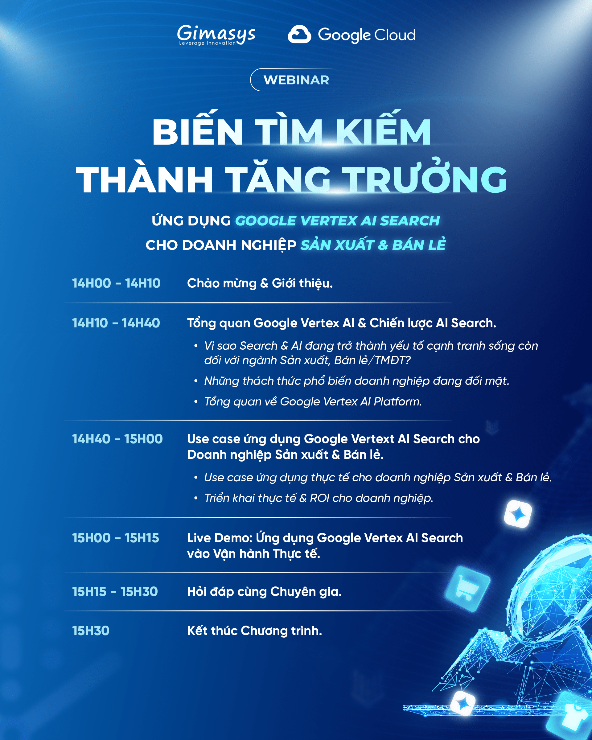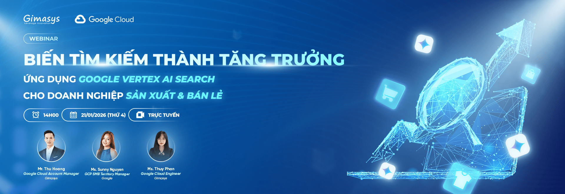 Gimasys & Google Cloud kính mời đại diện doanh nghiệp tham dự webinar “Biến Tìm kiếm thành Tăng trưởng: Ứng dụng Google Vertex AI Search cho Doanh nghiệp Sản xuất & Bán lẻ” vào ngày 21.01.2026
