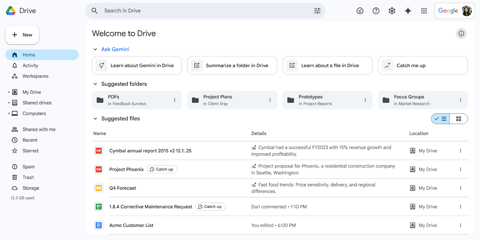Giờ đây, bạn có thể xem tóm tắt Gemini trực tiếp trong các tệp được đề xuất hiển thị trên Trang chủ của Google Drive. Các tóm tắt này sẽ hiển thị trên một số tệp Docs, Sheets, Slides và PDF trong danh sách tệp được đề xuất. Bạn có thể nhấp vào nút “Xem thêm” xuất hiện khi di chuột để xem phân tích chuyên sâu hơn hoặc hỏi Gemini các câu hỏi tiếp theo về tệp trong bảng điều khiển bên Gemini.